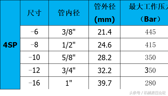 附:常用液壓膠管內外徑及最高工作壓力參數