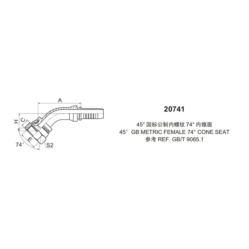 永華標(biāo)準(zhǔn)扣壓式接頭 2074145國(guó)際公制內(nèi)螺紋 74內(nèi)錐面45 GB METRIC FEMALE 74 CONE SETA參考標(biāo)準(zhǔn):REF.GB/T 9065